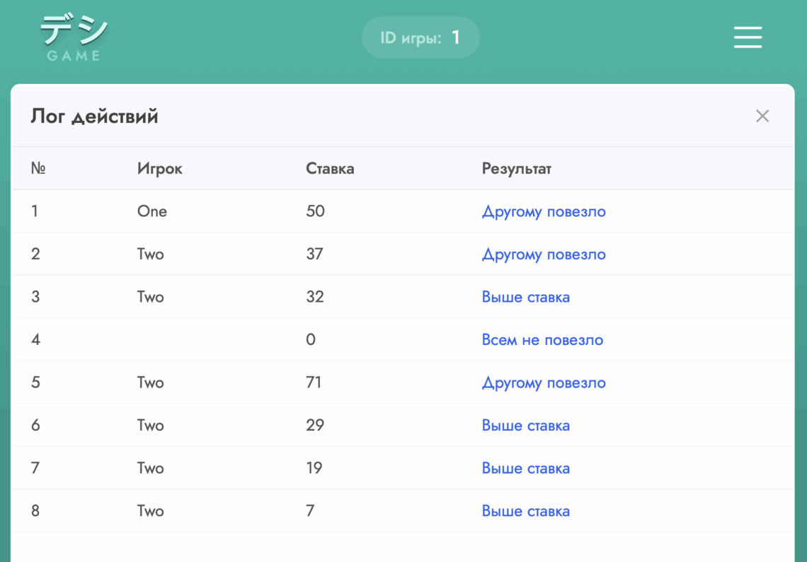 Игра в ставки между двумя участниками, где чем выше ставка, тем ниже шанс победить.